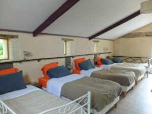 - Espace nuit en mezzanine (lit 160x200) et grand dortoir au RDC avec 5 lits (90x200) jumelables