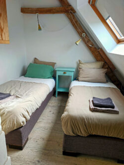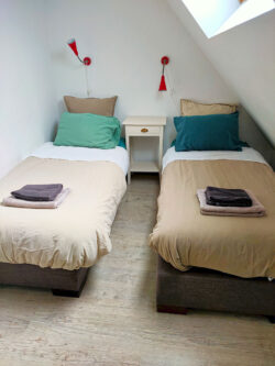 - 2 chambres à l'étage (1x lit 160x200) & (2x lits 80x200 jumelables)